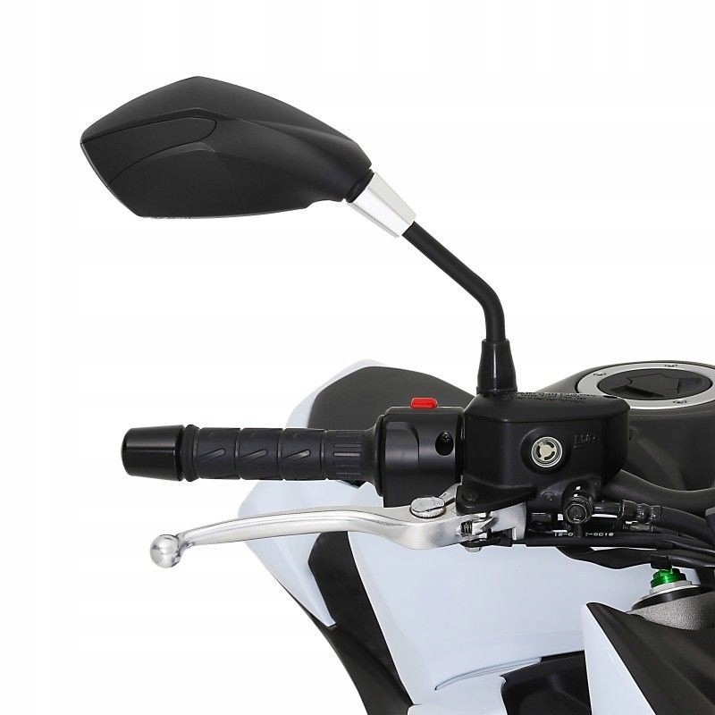 универсальное зеркало для мотоцикла Raven. Декоративный черный корпус оригинальной формы. Оба зеркала правое и левое имеют крепление на штифт M10 правая резьба, для крепления универсально к мотоциклам, а не к обтекателю.